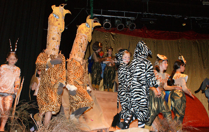 Geier, Löwin, Ameise, Gnu, Elefant